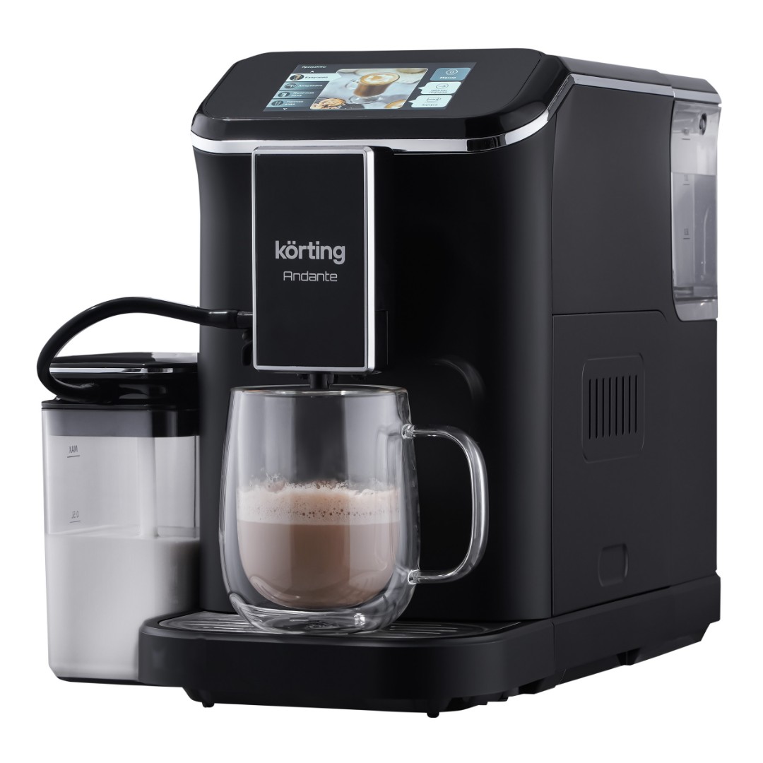 Кофемашина Korting KACM 2002 Andante — это современный прибор с большим количеством настроек, выполненный в строгом черном цвете. Она предназначена для приготовления как зернового, так и молотого кофе и оборудована итальянской помпой с давлением 20 бар, что обеспечивает идеальное извлечение ароматов и вкусов. Модель предлагает восемь автопрограмм с возможностью ручной настройки, что дает пользователю возможность разрабатывать и сохранять индивидуальные рецепты. Сенсорный экран с видеосопровождением облегчает выбор и управление машиной. Кофемашина поддерживает 15 уровней помола, а встроенный капучинатор позволяет готовить великолепные кофейные напитки с молоком одним нажатием сенсорной кнопки. Резервуар для молока объемом 750 мл, входящий в комплект, удобно убирается в холодильник для хранения.